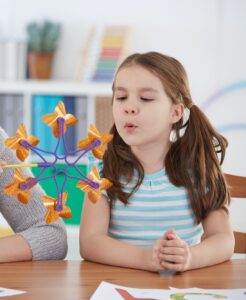 OTs work with children and their families, to help enhance skills with independence, learning, playing, drawing, handwriting, getting dressed, and toileting.